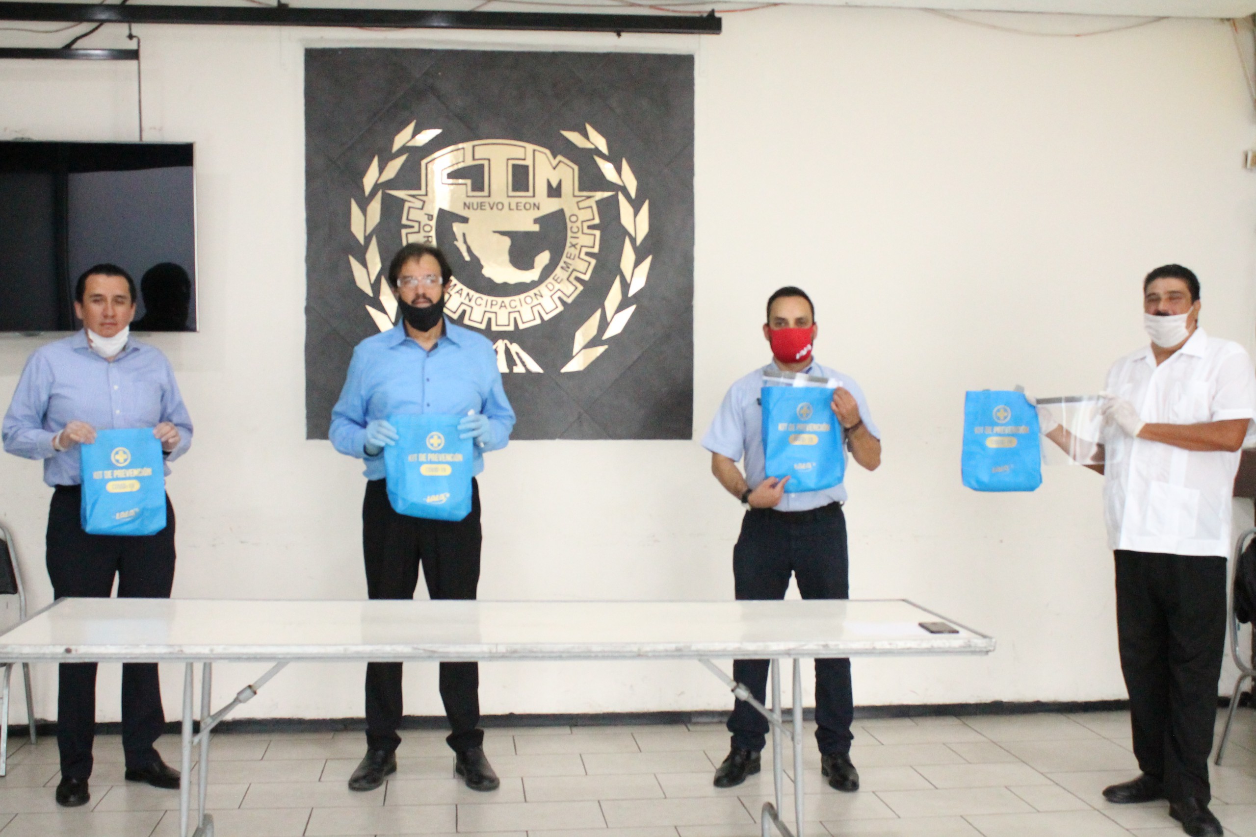 El Secretario General de la Confederación de Trabajadores de Nuevo León, Ismael Flores Cantú, recibió de Martín Raciel Mena, Jefe de Relaciones Laborales y Arnulfo Gutiérrez, Gerente de Recursos Humanos de Grupo LALA, una donación en especie por 100 kits de salubridad para combatir la pandemia por el COVID-19 en las áreas de producción.