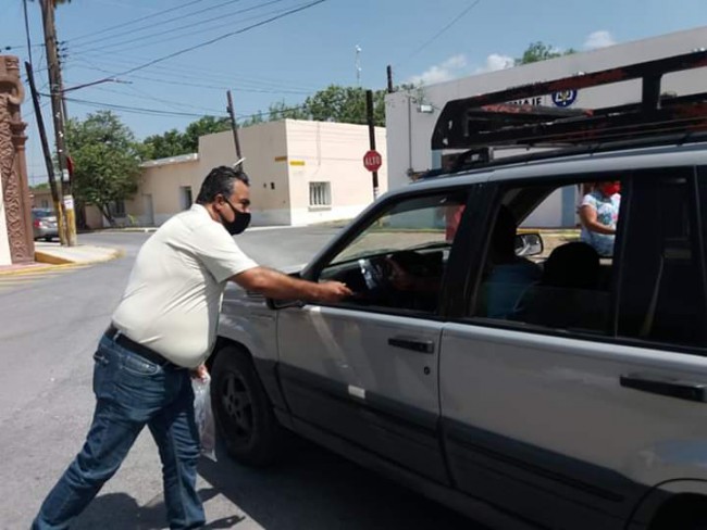 De la mano de su Secretario General, Ricardo Villarreal y la alcaldesa de Abasolo los voluntarios recorrieron las calles entregando los equipos de sanidad a los ciudadanos que lo requirieron.
