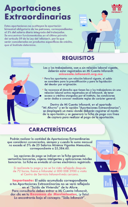 El requisito es contar con un registro en Mi Cuenta Infonavit, en el portal digital del Instituto. Desde allí puedes entrar a la sección de Mi Ahorro, donde encontrarás la opción Haz Aportaciones Extaordinarias para que se genere tu ficha de pago con la que podrás efectuar el respectivo depósito en tu Subcuenta de Vivienda.