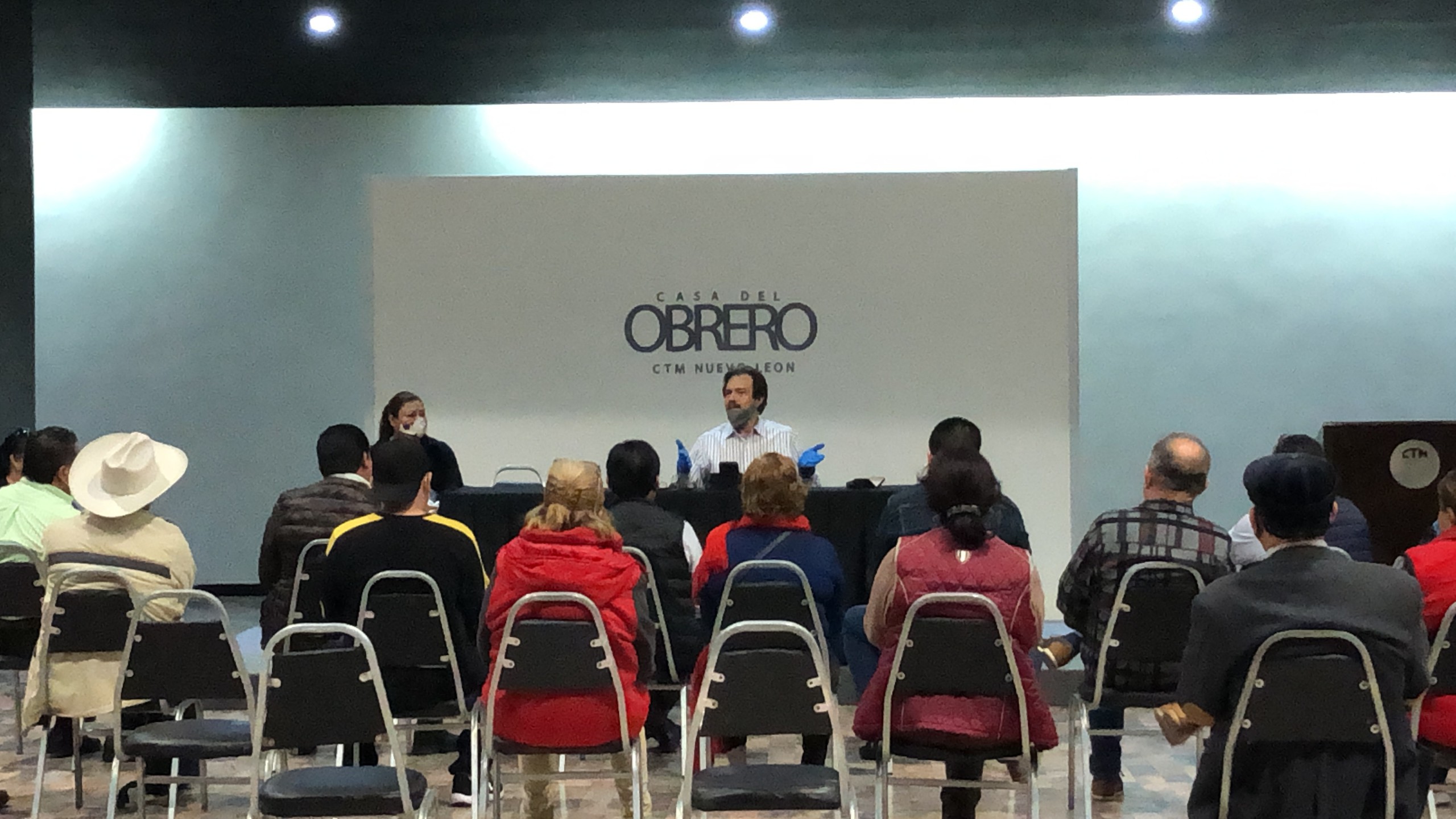 Ismael Flores Cantú, instruye a los voluntarios sobre la importancia de cuidar la salud de la fuerza laboral.