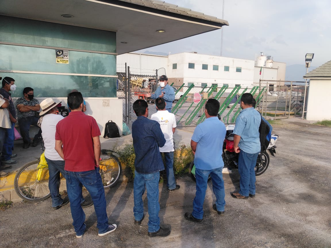Después de una sesión informativa con Ismael Flores Cantú, Secretario General de la Federación de Trabajadores de Nuevo León, CTM en la que los voluntarios fueron instruidos en el cuidado de la salud e higiene laboral, los activistas comandados por Juan Faz, Secretario General municipal de García pusieron manos a la obra montando un punto de control en la anteriormente mencionada empresa.