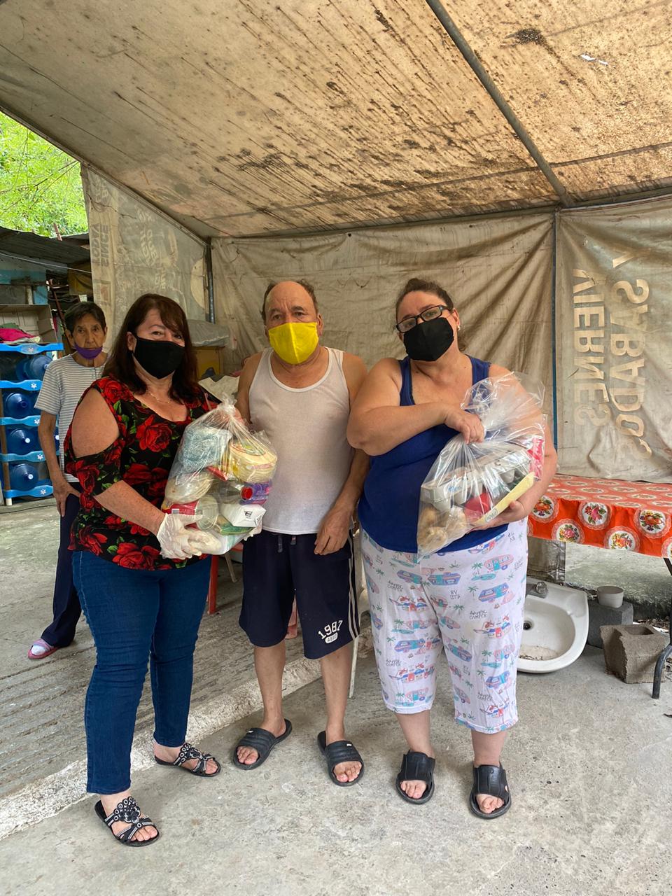 El equipo de voluntarios, coordinados por la Lic. Maribel Villalon, con instrucciones precisas hacen entrega de los set que incluye: gel antibacterial y cubrebocas por ser material necesario para prevenir la propagación del virus; además recibieron paquetes de productos con alimentos de la canasta básica.
