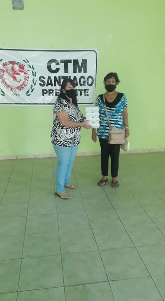 Portando el equipo de protección adecuado, y conservando la sana distancia, voluntarios de la CTM de Santiago, Nuevo León, entregaron a adultos mayores alimentos y equipo de protección dada la crisis que aqueja a la ciudadanía causada por el COVID19.